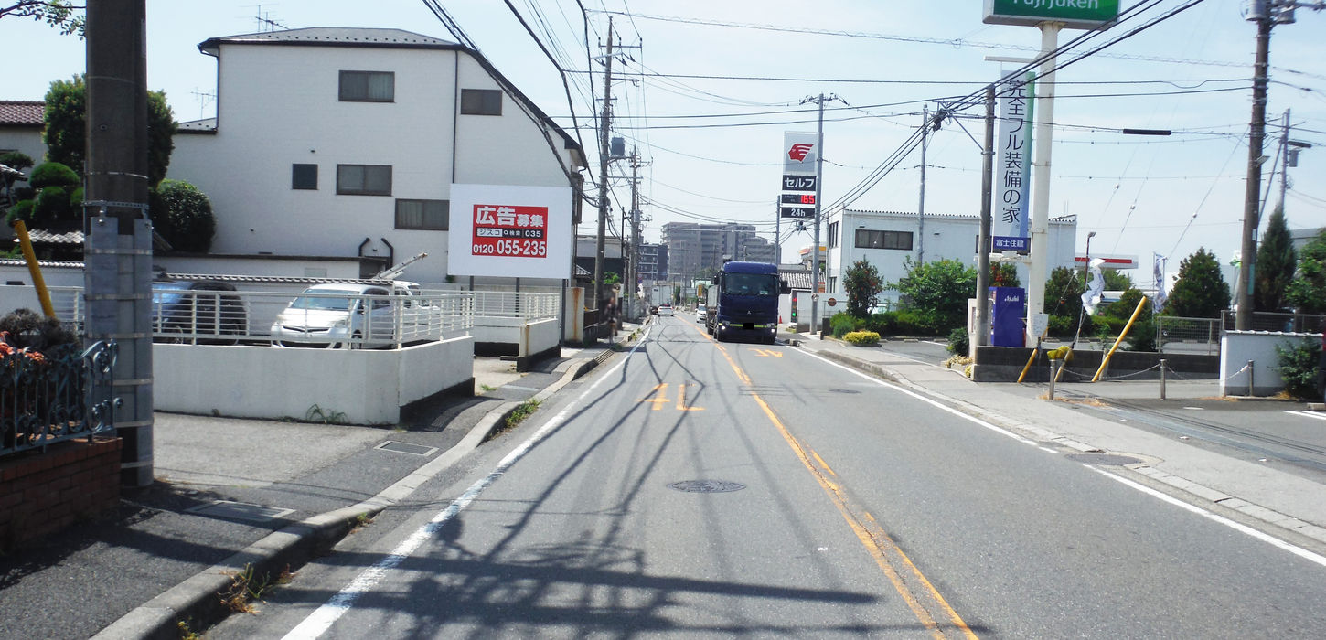 国道296号線沿いに設置された看板です。交通量の多い道路!八千代、佐倉などの方面から船橋に向かう道です。看板の先は船橋ららぽーと、船橋競馬場方面になり、利用されるドライバーの方も多く注目の立地です。